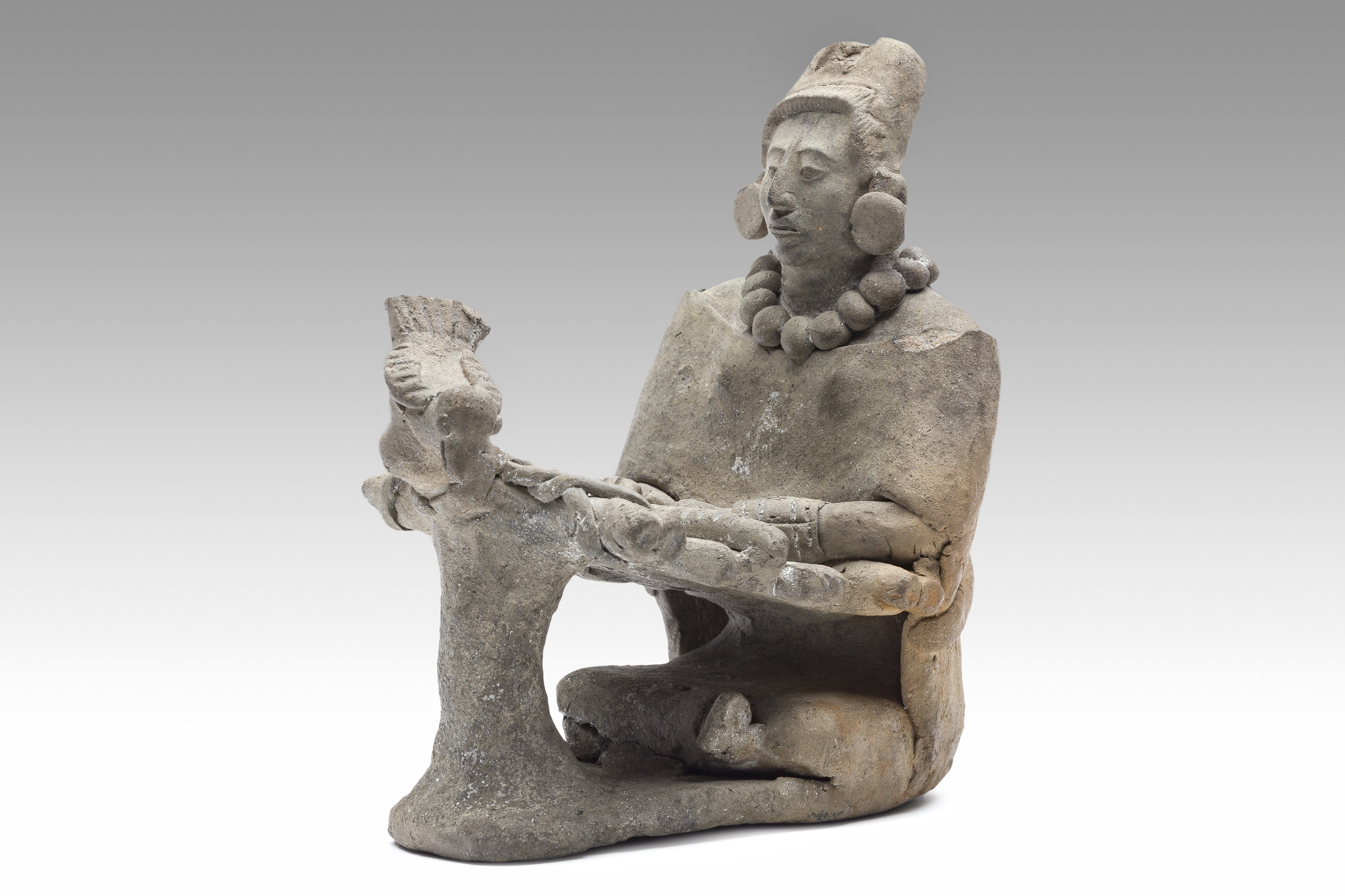Escultura femenina con quechquemitl y enredo