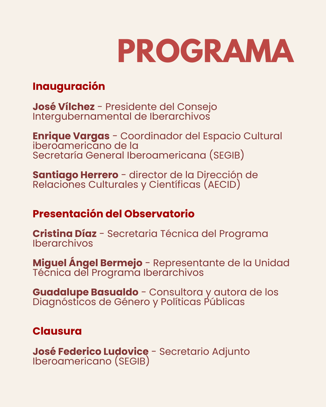 - Miguel Ángel Bermejo - Representante de la Unidad Técnica del Programa Iberarchivos